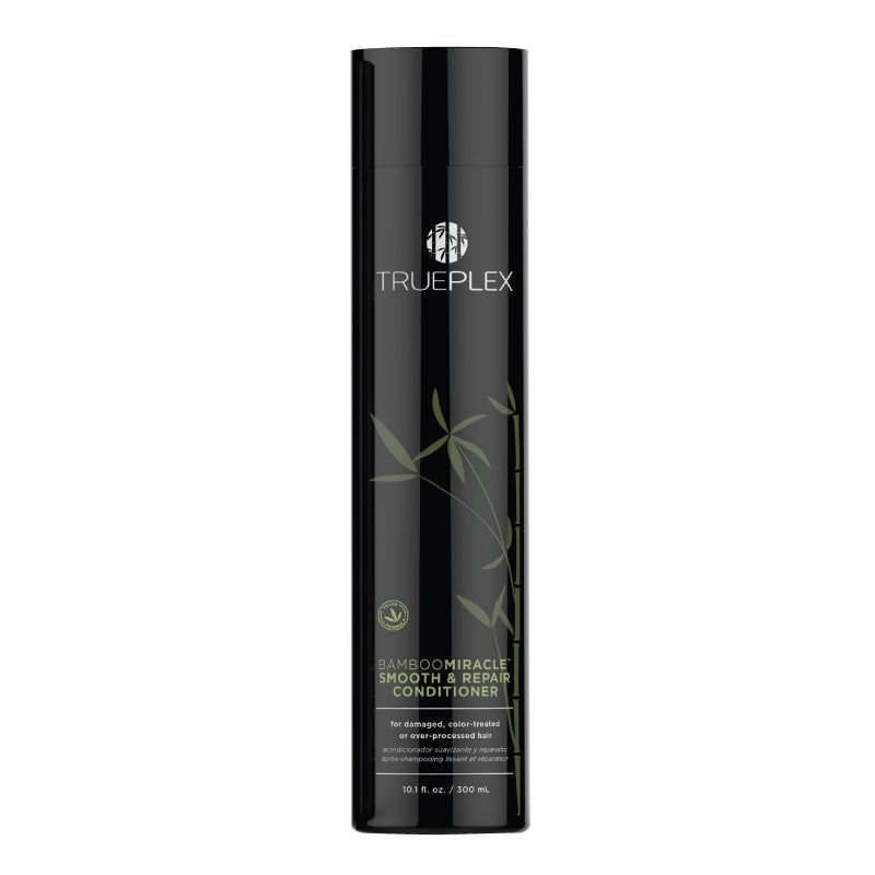 Trueplex presents BAMBOOMIRACLE Smooth & Repair Conditioner; offering ultimate nourishment to your hair and helping extend the life of BAMBOOMIRACLE Blowout treatments. With a vegan formula paraben and sodium chloride that will leave your hair clean smooth and soft. | | Quenches and revives color-treated dry or damaged hair | | Bamboo and Baobab Seed extracts lock moisture into the hair and prevent dehydration while Grape Seed extract protects against harmful UV rays and prevents color fade | | Extend the life of smoothing treatments and color leaving hair supple smooth and soft